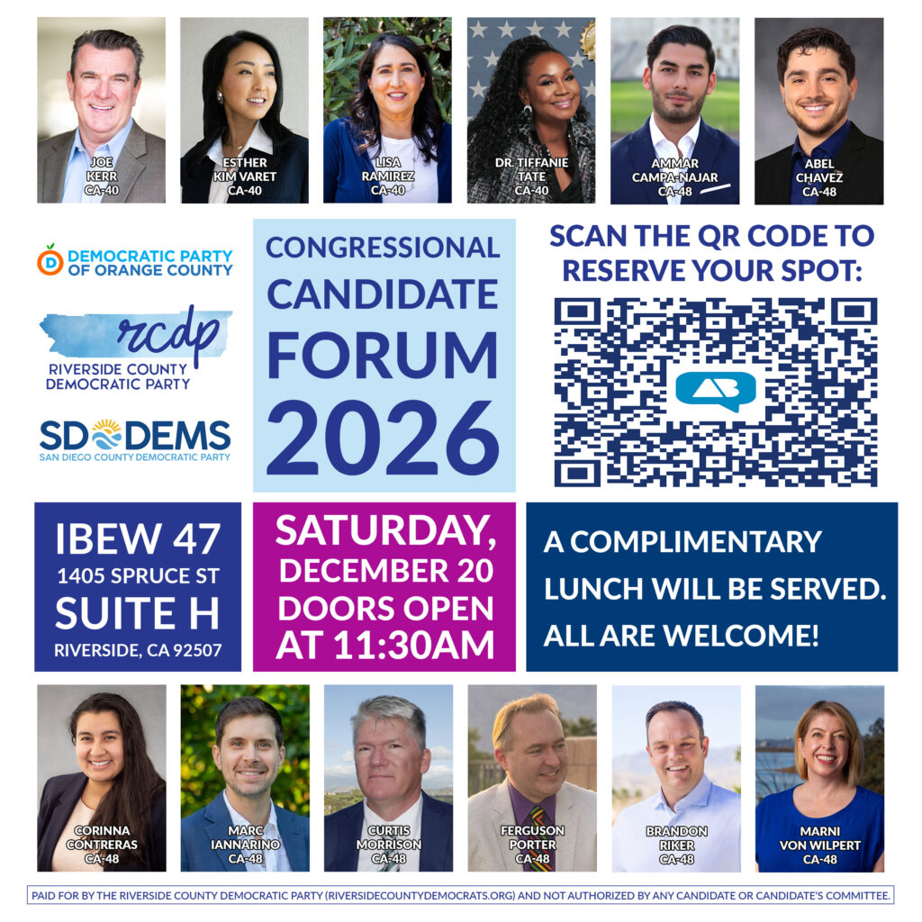Join us for an engaging candidate forum where you’ll hear directly from our Democratic candidates on the issues that matter most to our community. This is your opportunity to meet the candidates, ask questions, and learn about their vision for our counties’ future.