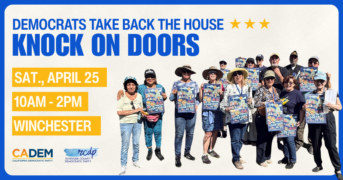 In 2025, we made history by passing Prop 50. Now it’s time to turn that victory into lasting change by taking back the House! Join us for a deep canvass in Winchester!