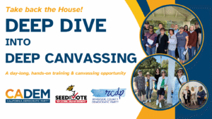 Join us for a Deep Dive into Deep Canvassing on March 15 from 12pm-6pm. To give California the best shot at taking back the House this year, we’re using some of the best practices from deep canvassing that have made a difference in some of the toughest races across the country.